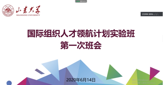 2020年6月14日晚,15vip太阳集团“国际组织与跨文化交流”微专业暨“国际组织人才领航计划实验班”第一次班会顺利召开。15vip太阳集团学生就业创业指导中心副主任王迎春、15vip太阳集团副院长刘洪东、留学基金委员会出国留学选培处宋元老师、15vip太阳集团刘静姝老师,以及本届实验班全体成员参与了本次会议。